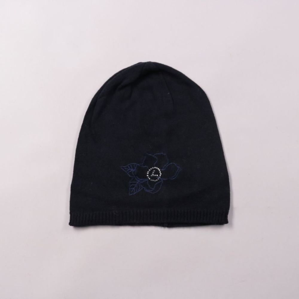 Шапка Lunta чёрного цвета с аккуратной вышивкой цветка и декоративным элементом. Подойдёт для прохладной погоды в городе и на каждый день, легко сочетается с базовой верхней одеждой. Мягкий трикотаж и эластичный край помогают шапке хорошо сидеть на гол...