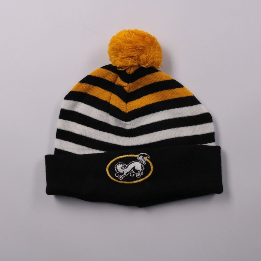 Вязаная шапка с помпоном в полоску, размер Junior. Подойдёт для зимних прогулок и активного отдыха, хорошо закрывает уши за счёт отворота. Материал акрил — легко стирается и быстро сохнет.