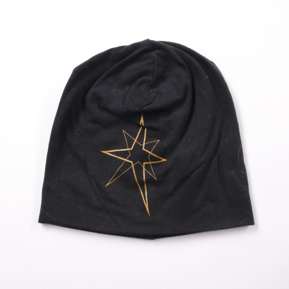 Шапка Pull&Bear чёрного цвета с принтом звезды. Подойдёт на прохладную погоду на каждый день и под спортивный или повседневный стиль. Мягкий трикотаж хорошо тянется и удобно сидит под капюшоном.