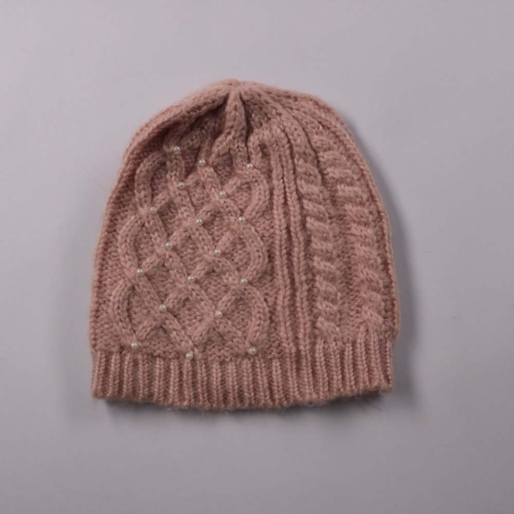 Вязаная шапка с фактурным узором «косы» и декором из небольших бусин. Подойдёт для зимних прогулок и повседневных образов в холодную погоду. Плотная вязка хорошо держит тепло и прикрывает уши.