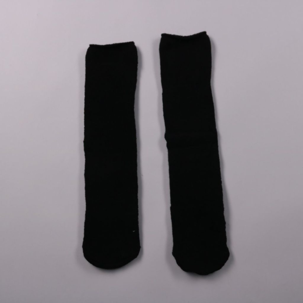 Чёрные носки без указанного бренда, с антискользящими снежинками на подошве. Подойдут для дома и занятий на гладком полу. Прорезиненный рисунок помогает лучше держаться и снижает риск скольжения.