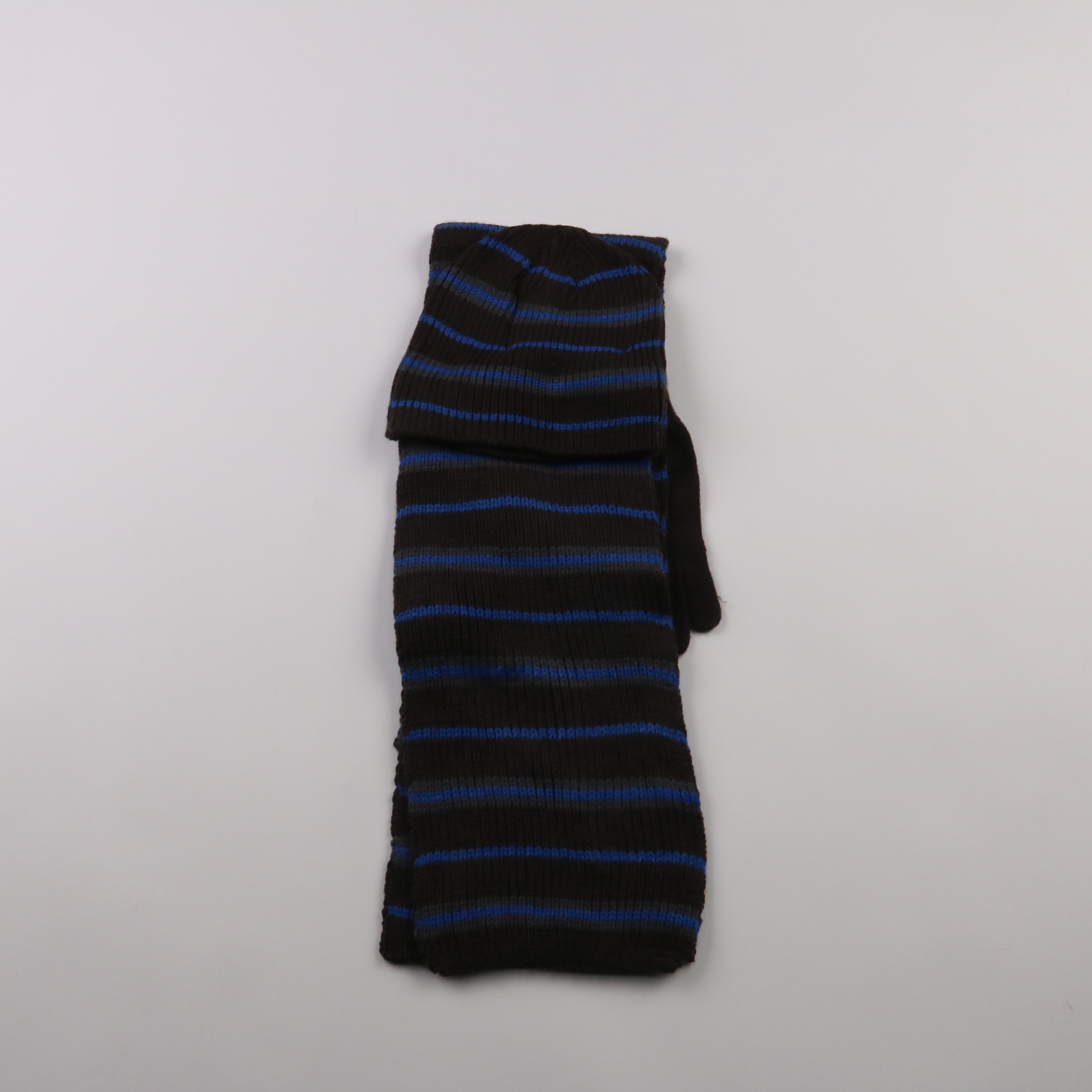 Вязаные носки Alive в чёрном цвете с синими полосками. Подойдут для повседневной носки дома или в обуви в прохладную погоду. Плотная вязка хорошо держит форму и сохраняет тепло.