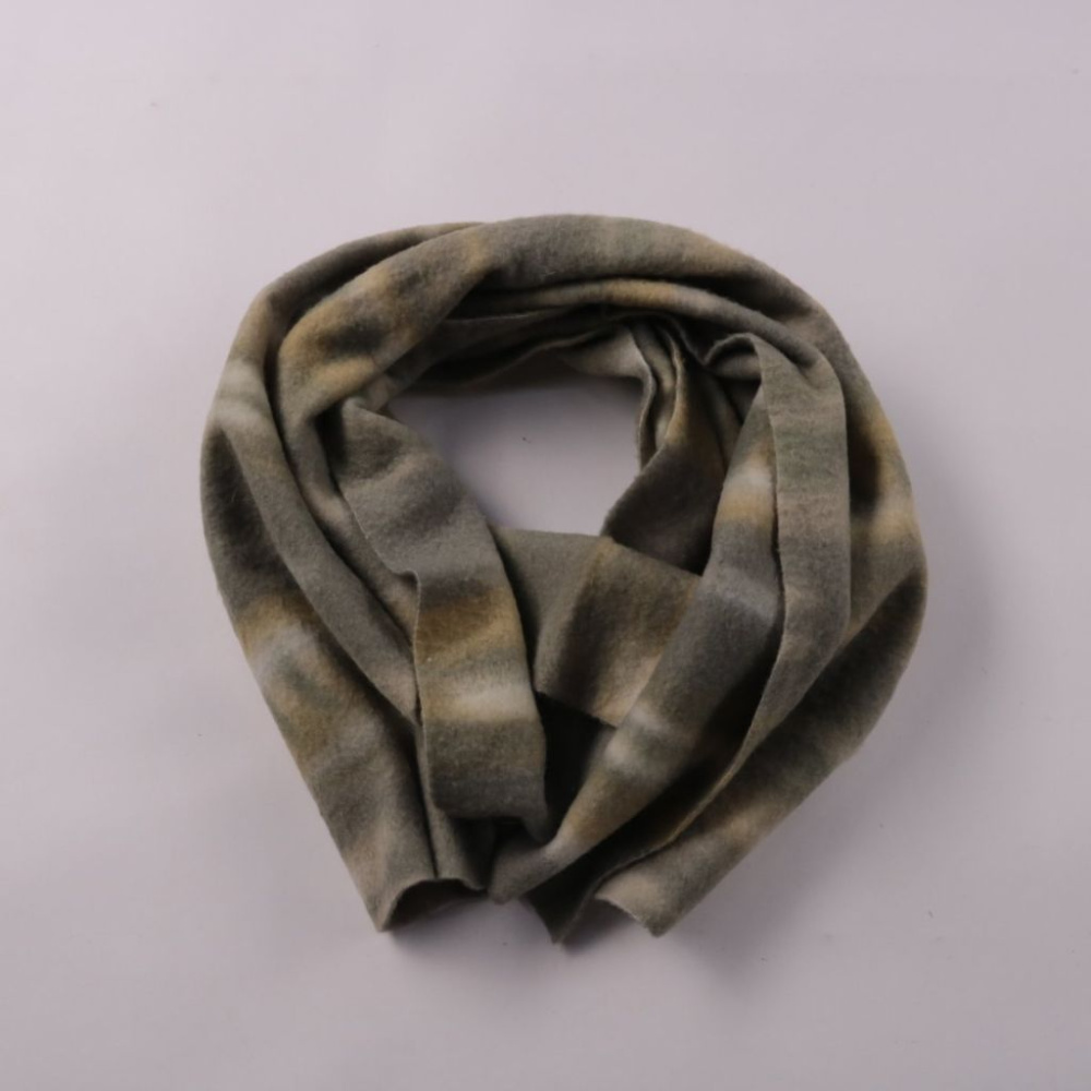 Шарф в серо-бежевой гамме с мягким размытым принтом. Подойдёт для повседневных образов в прохладную погоду, легко сочетается с верхней одеждой нейтральных оттенков. Тонкий материал удобно драпируется и не занимает много места в сумке.
