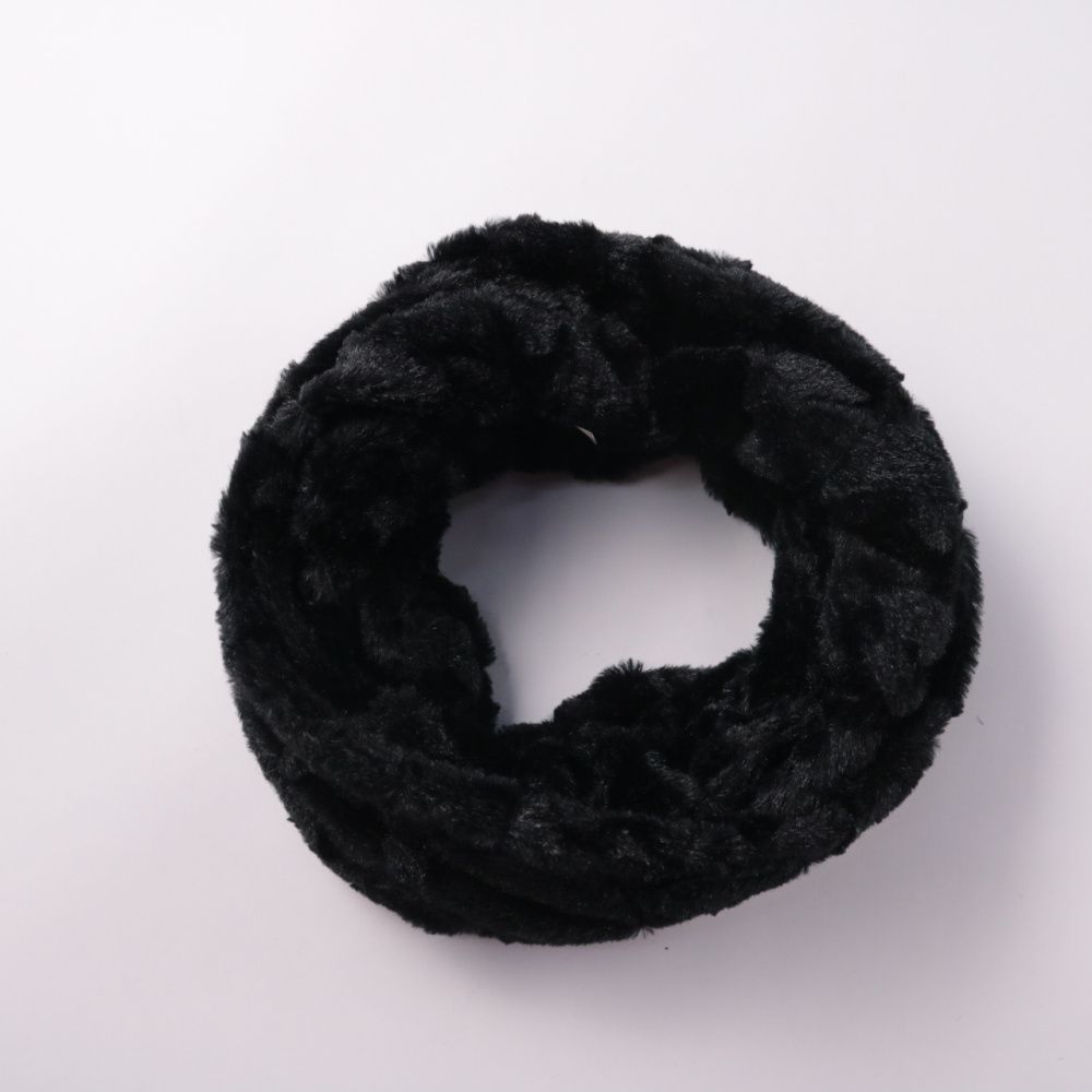 Меховой шарф-снуд LYESTER чёрного цвета, мягкий и объёмный, хорошо закрывает шею от ветра. Подойдёт для зимних прогулок и поездок, легко сочетается с пуховиками и пальто. Практичный плюс — не развязывается и быстро надевается через голову.