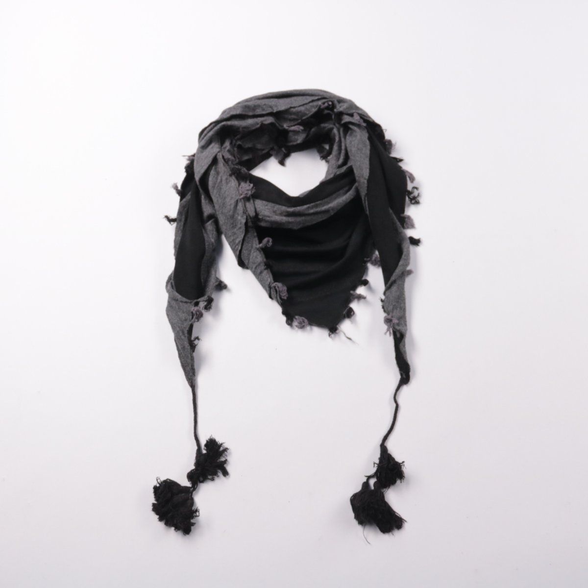 Треугольный шарф-бандана с кисточками, без указания бренда. Подойдёт для прохладной погоды в демисезон и как акцент к куртке или пальто. Мягкая вискозная смесь приятна к коже и легко драпируется.