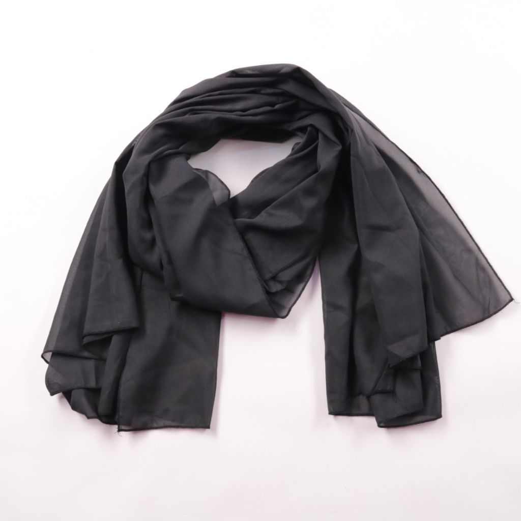 Чёрный шарф Esmara из лёгкой полупрозрачной ткани. Подойдёт для повседневных образов и как накидка на плечи в помещении или в тёплую погоду. Компактно складывается и почти не занимает места в сумке.
