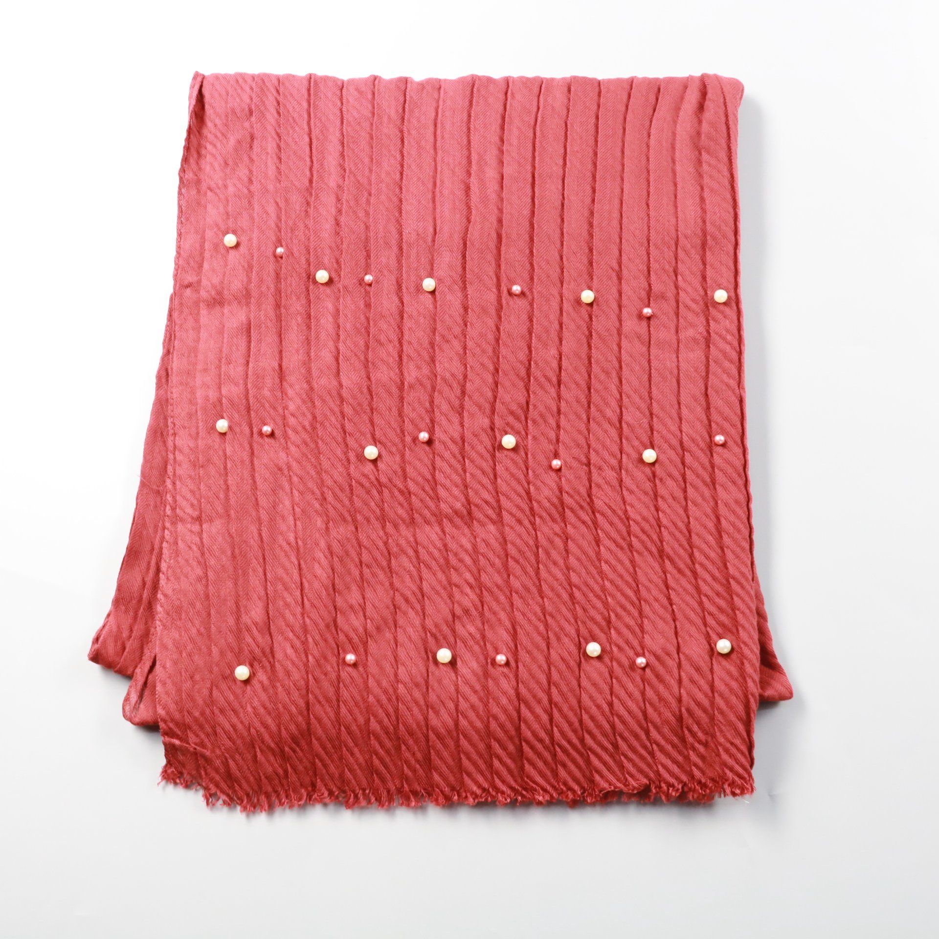 Шарф Founara розового цвета с плиссированной фактурой, декором из бусин и небольшими кисточками по краю. Подойдёт для повседневных образов и в качестве акцента к однотонной верхней одежде или платью. Лёгкий полиэстер быстро сохнет и не требует сложного...