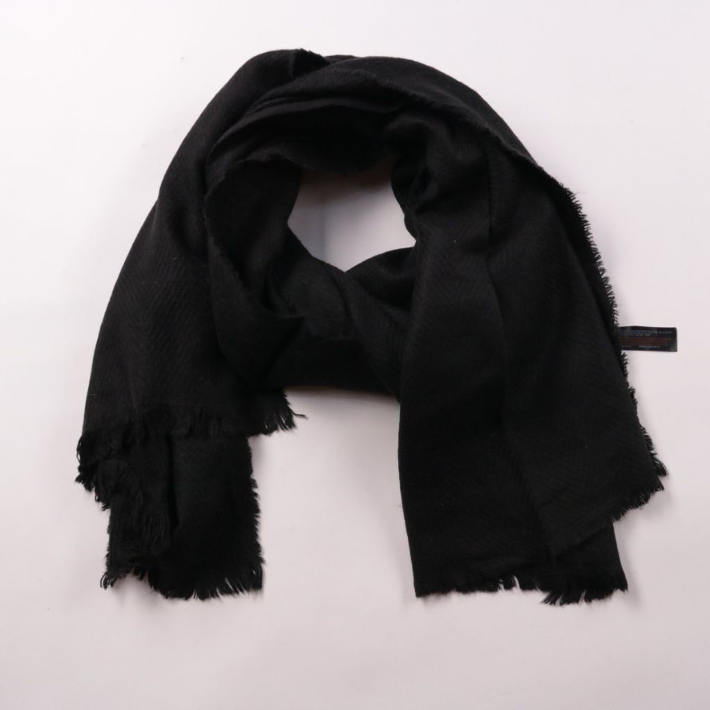 Чёрный шарф Primark с мягкой фактурой и бахромой по краям. Подойдёт для повседневной носки и прохладной погоды, легко сочетается с верхней одеждой. Практичен тем, что универсальный цвет подходит к большинству образов.