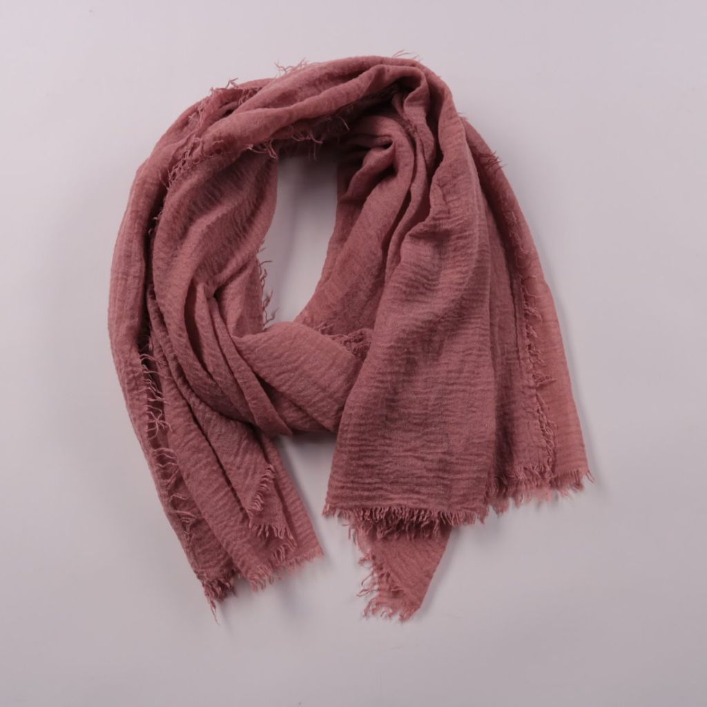 Шарф без бренда в пыльно-розовом цвете, из тонкой фактурной ткани с лёгкой жатостью и бахромой по краям. Подойдёт для демисезона и прохладных вечеров, хорошо сочетается с пальто, курткой или трикотажем. Легко складывается и не занимает много места в су...