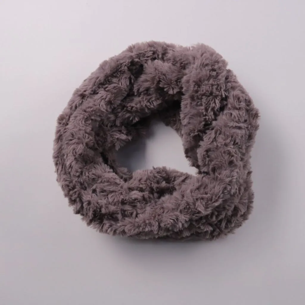 Мягкий шарф-снуд из пушистой ткани без бренда, в спокойном сером оттенке. Подойдёт для повседневной носки в холодную погоду, удобно надевать поверх куртки или пальто. Хорошо защищает шею от ветра и не требует завязывания.