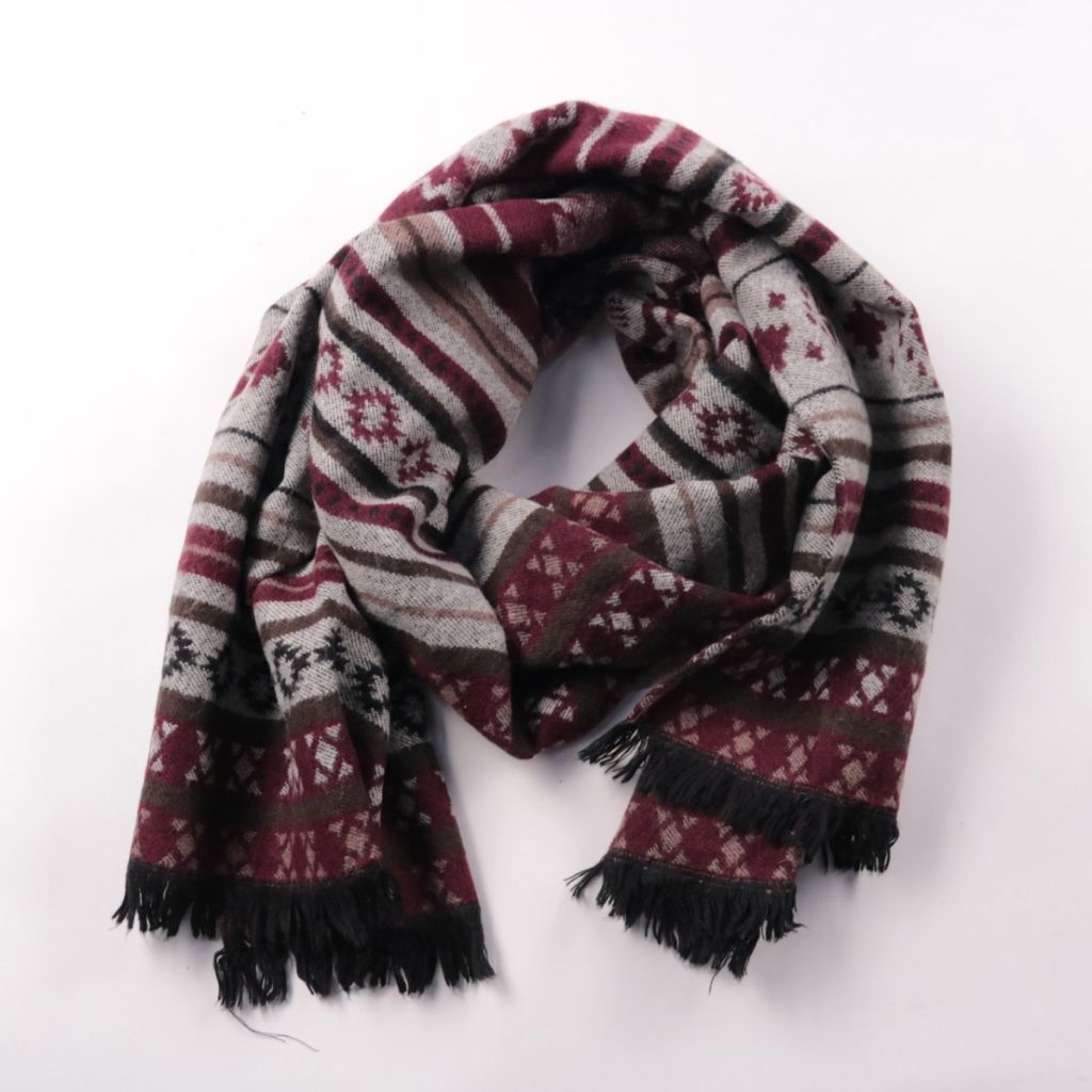 Вязаный шарф Cubus с жаккардовым узором и кисточками по краям. Подойдёт для повседневной носки в холодную погоду и для демисезонных образов. Акриловый состав легко стирается и быстро сохнет.