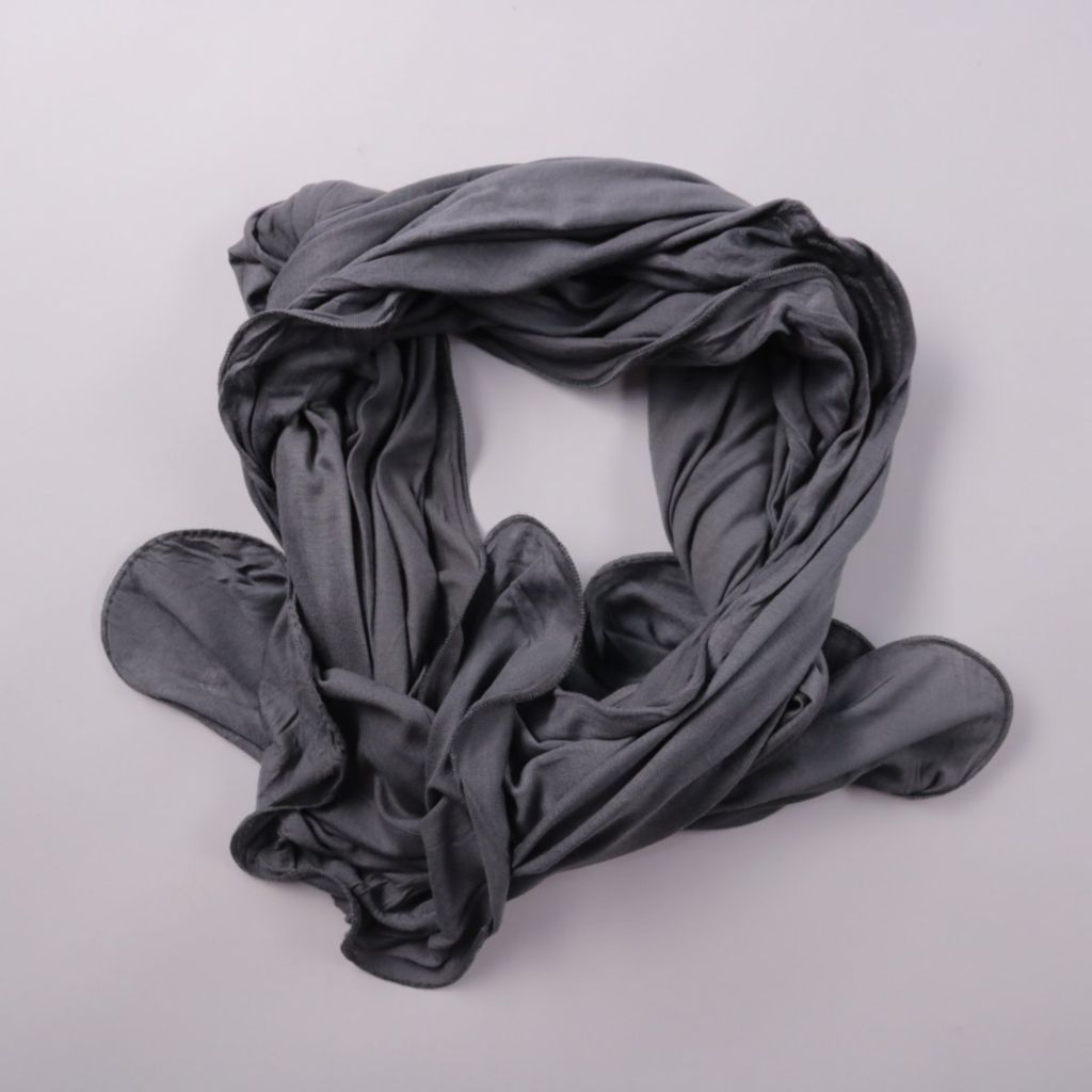 Лёгкий серый шарф без видимого бренда, мягко драпируется и подходит для повседневных образов. Удобен для демисезона и прохладных вечеров летом. Компактно складывается и не занимает много места в сумке.