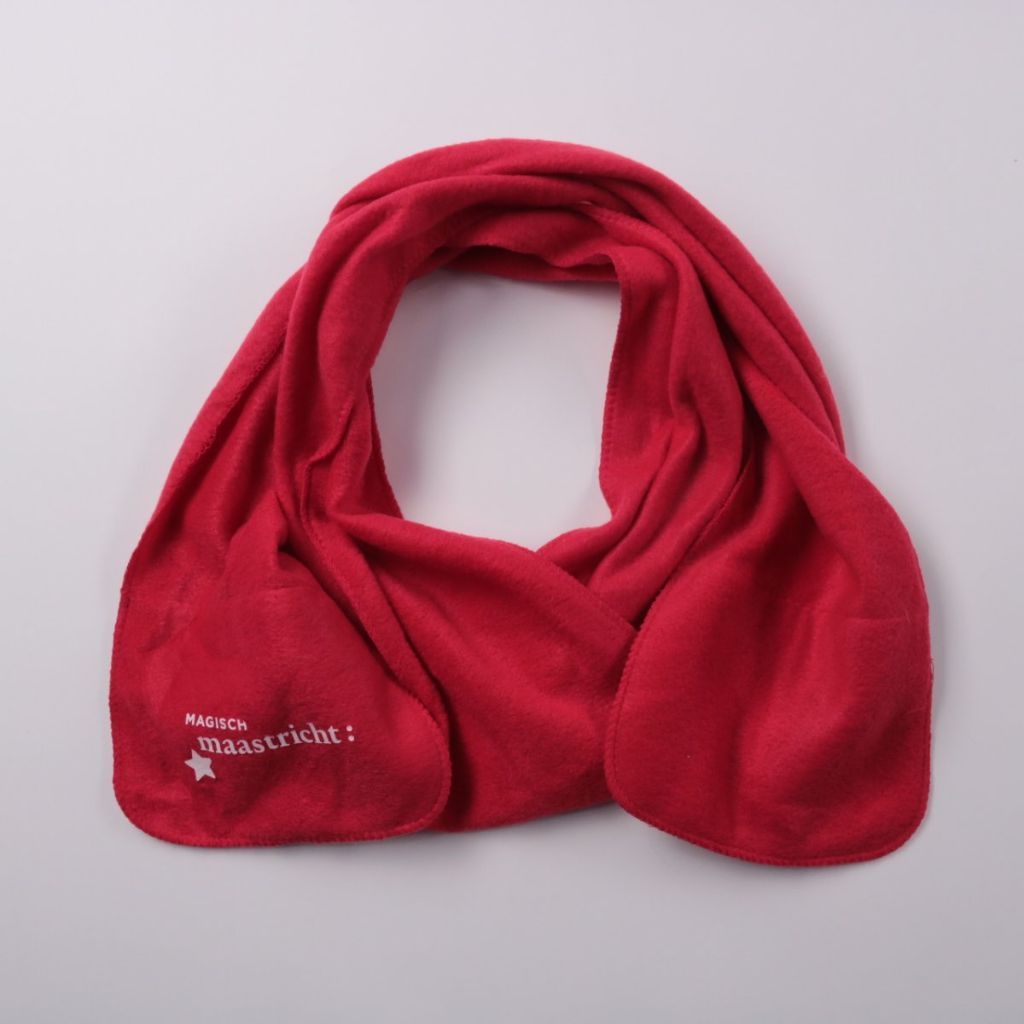 Красный шарф из мягкого флиса с небольшим принтом «Magisch maastricht». Подойдёт для повседневных прогулок в прохладную погоду и легко сочетается с верхней одеждой. Тёплый материал приятен к коже и быстро сохнет после стирки.