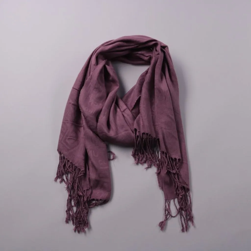 Шарф с бахромой в фиолетовом оттенке, мягкий и тонкий по фактуре. Подойдёт для повседневных образов в прохладную погоду и в качестве акцента к пальто или куртке. Легко драпируется и не занимает много места в сумке.