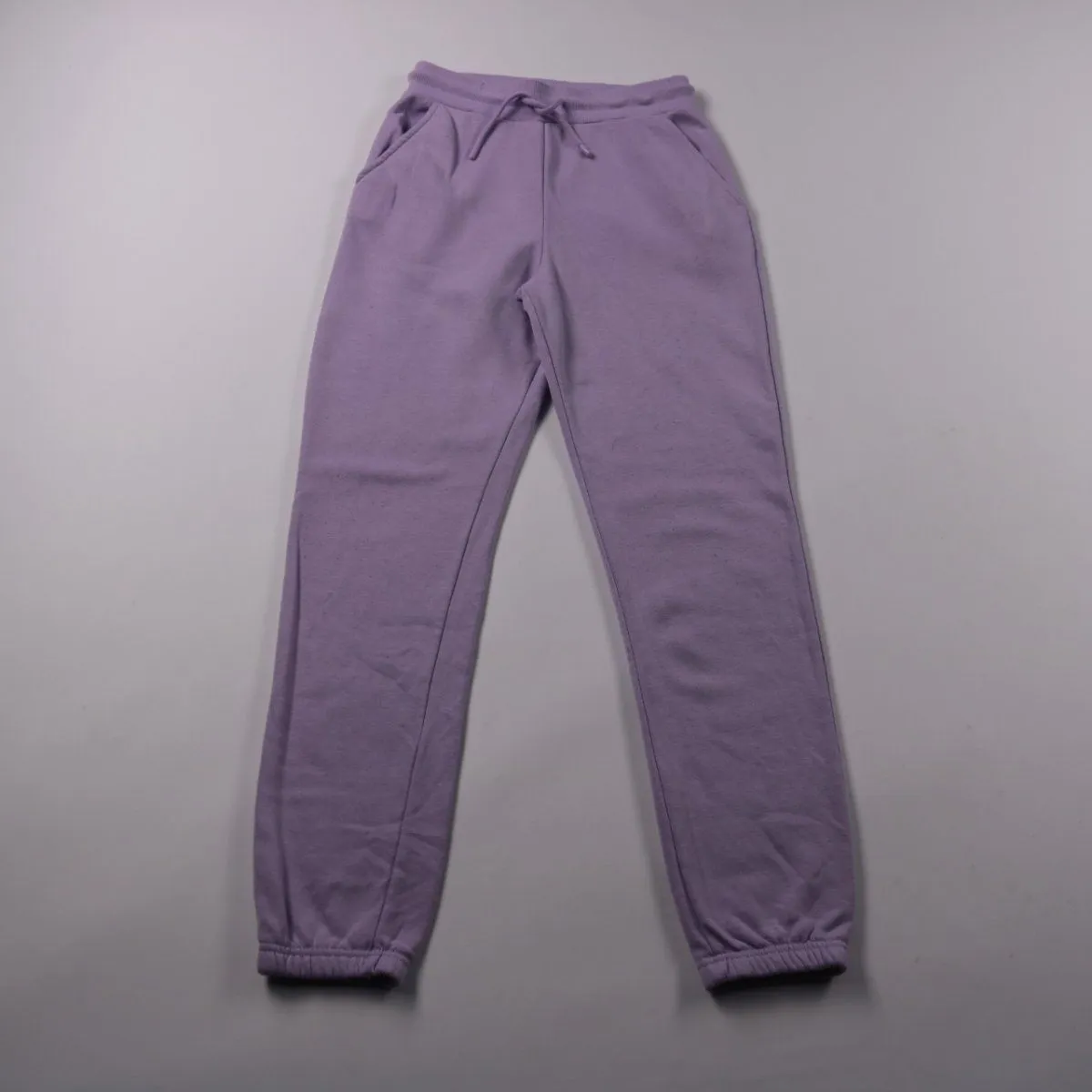 Спортивные брюки FB Sister лавандового цвета с эластичным поясом на шнурке и боковыми карманами. Подойдут для прогулок, дома и занятий в прохладную погоду благодаря мягкой флисовой изнанке. Манжеты снизу помогают брюкам не задираться и хорошо держат посадку.