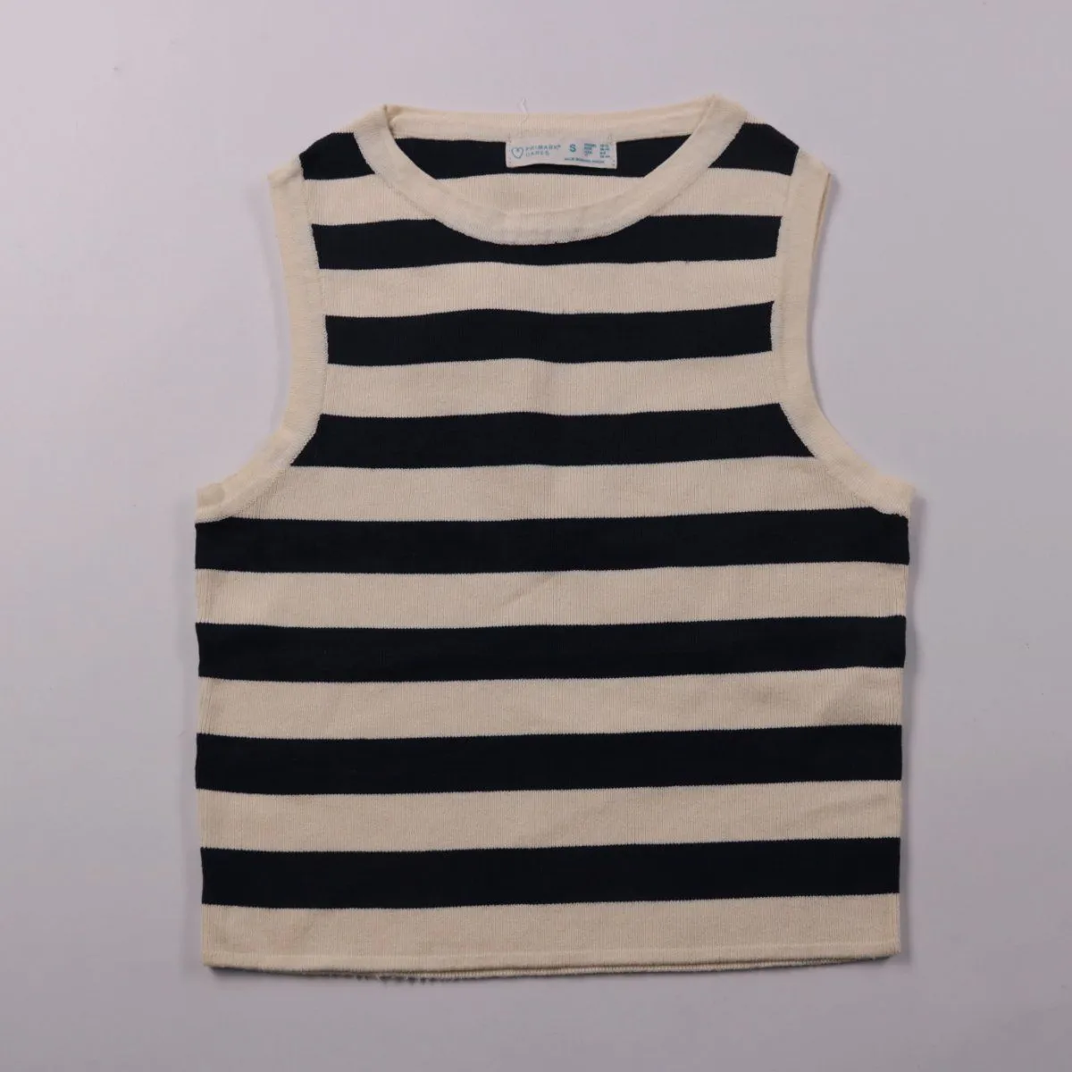 Топ Primark Cares в чёрно-белую полоску, без рукавов и с круглым вырезом. Подойдёт для лета и тёплой погоды, удобно носить в школу или на прогулку. Трикотажный материал тянется и комфортно сидит под кардиганом или худи.