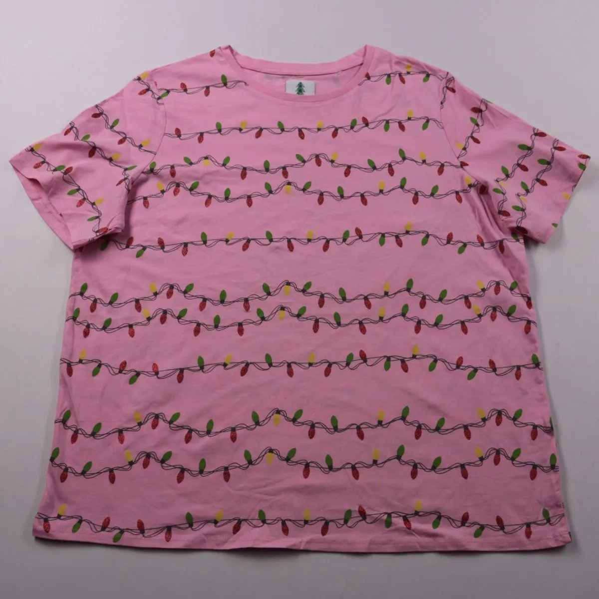 Розовая футболка George с коротким рукавом и принтом гирлянд. Подойдёт для повседневной носки и летних прогулок. Натуральный хлопок хорошо дышит и комфортен в жару.