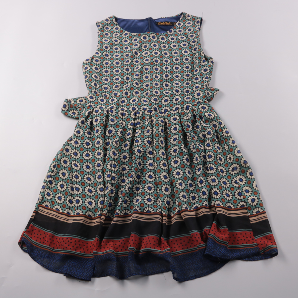 Платье Goldkid для девочки с цветочным принтом и пышной юбкой, застёгивается сзади на молнию. Подойдёт для праздников и повседневных выходов в тёплое время или в помещении. Лёгкая ткань не мнётся и быстро сохнет.
