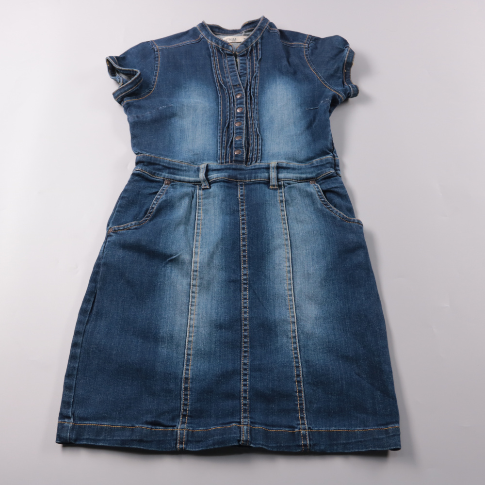 Джинсовое платье Lindex из денима с короткими рукавами и застёжкой на кнопки спереди. Подойдёт для повседневной носки в детский сад или на прогулки, легко сочетать с футболкой и леггинсами. Плотная ткань со стрейчем хорошо держит форму и не сковывает д...