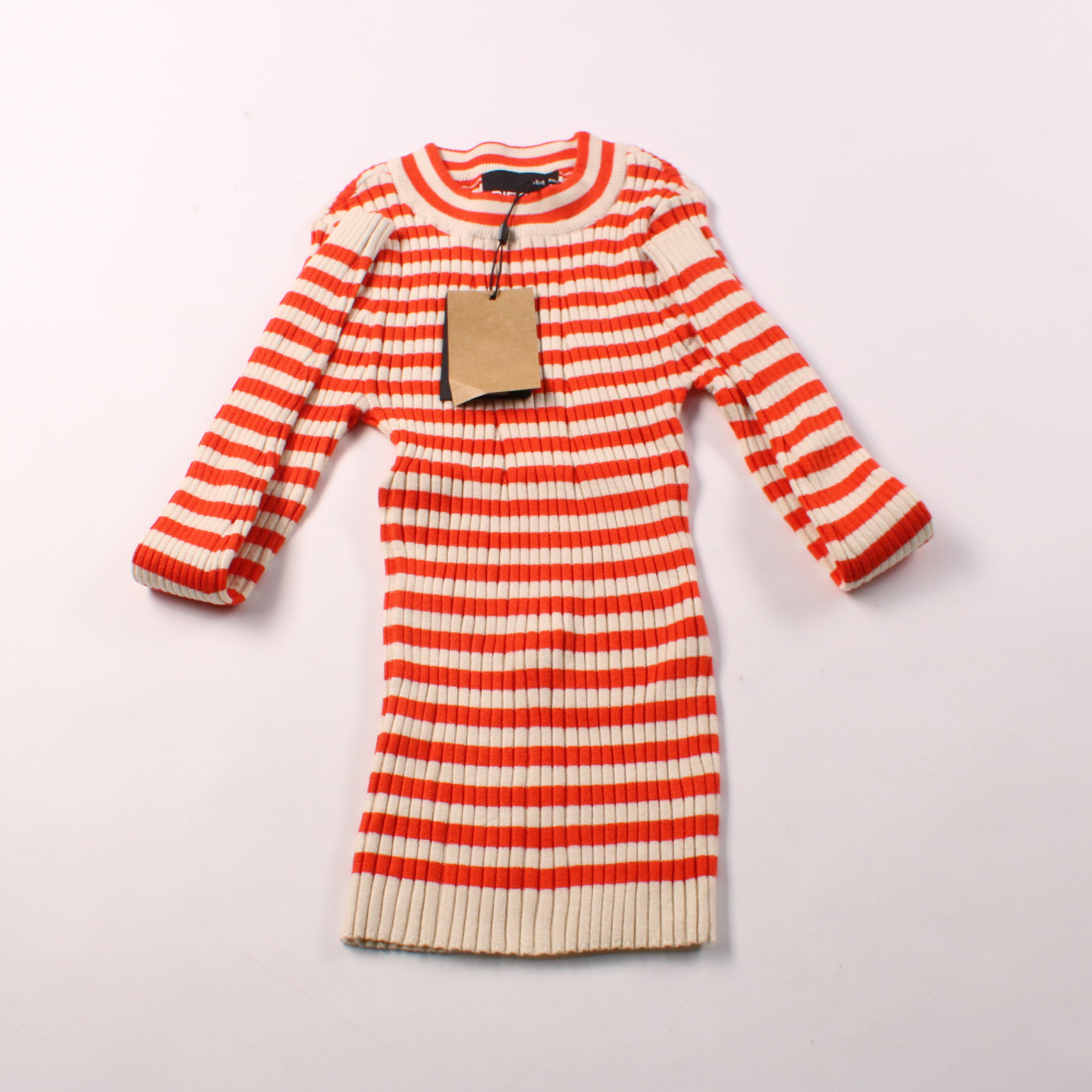 Вязаное платье Pieces в красно-белую полоску с длинным рукавом и фактурной резинкой. Подойдёт для школы или прогулок в прохладную погоду, легко сочетается с колготками и кардиганом. Практичный плюс — тянущийся трикотаж хорошо садится по фигуре и не сте...