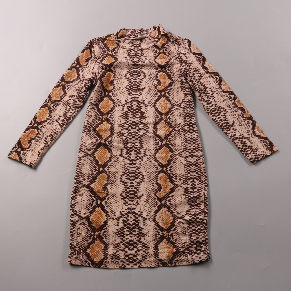 Платье Shein для девочки с длинным рукавом и принтом под змеиную кожу. Подойдёт для прогулок и праздников в прохладную погоду, хорошо смотрится с колготками и ботинками. Трикотаж тянется и не сковывает движения.