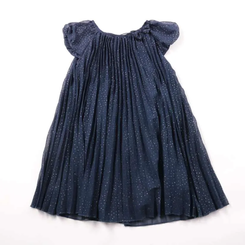 Лёгкое платье Happy Girls Club тёмно-синего цвета в мелкий горошек, с пышными рукавами и сборкой у горловины. Подойдёт для повседневной носки летом, в садик или на прогулки. Полиэстер быстро сохнет и легко стирается.