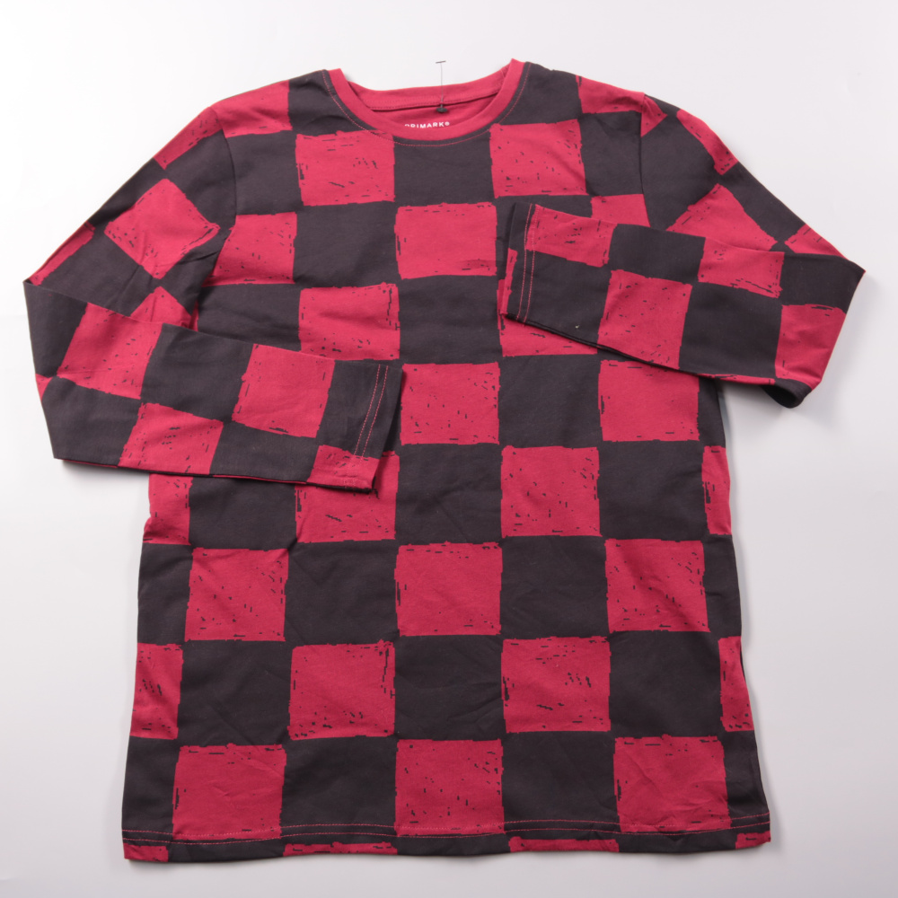 Лонгслив Primark с контрастным клетчатым принтом в красно-чёрных тонах. Подойдёт для школы и прогулок в прохладную погоду, удобно носить как самостоятельный слой или под жилет/куртку. Натуральный хлопок приятен к телу и хорошо дышит.