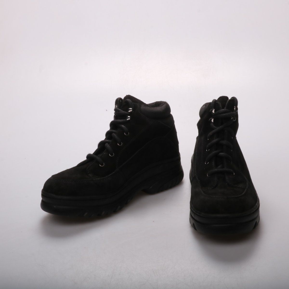 Черные мужские ботинки на шнуровке с высокой посадкой и массивной подошвой. Подойдут для повседневной носки в городе в прохладную погоду и на прогулки. Рельефная подошва дает лучшее сцепление на мокром асфальте.