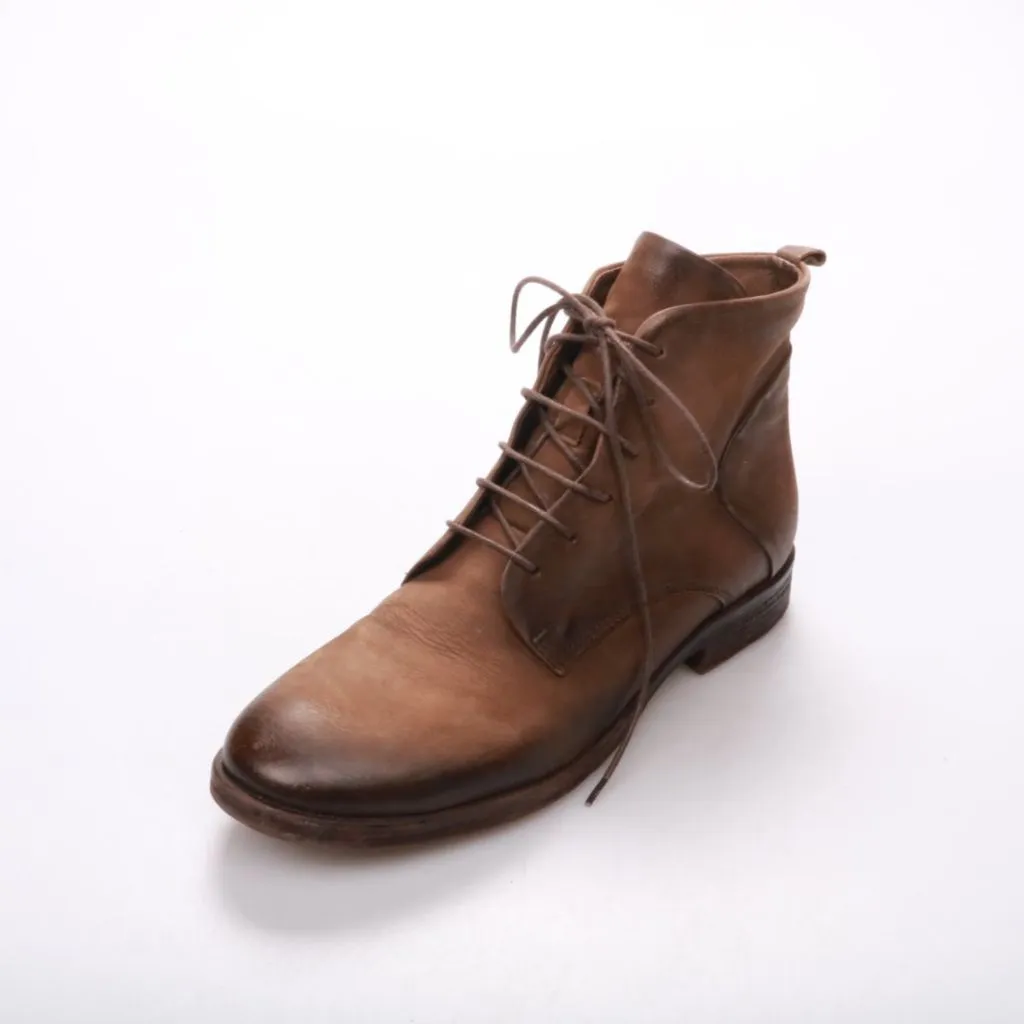 Мужские кожаные ботинки на шнуровке в коричневом цвете, укороченная модель до щиколотки. Подойдут для повседневной носки в городе в межсезонье и будут хорошо смотреться с джинсами и брюками. Практичная износостойкая подошва обеспечивает уверенное сцепл...