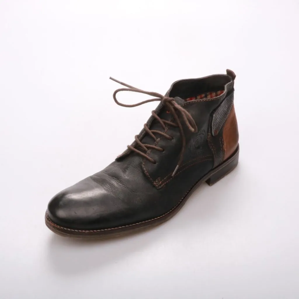 Мужские ботинки Bugatti из кожи в черно-коричневой расцветке, на шнуровке и с невысоким голенищем. Подойдут для повседневных городских образов в межсезонье, хорошо сочетаются с джинсами и брюками. Плотная подошва обеспечивает устойчивость и практична д...