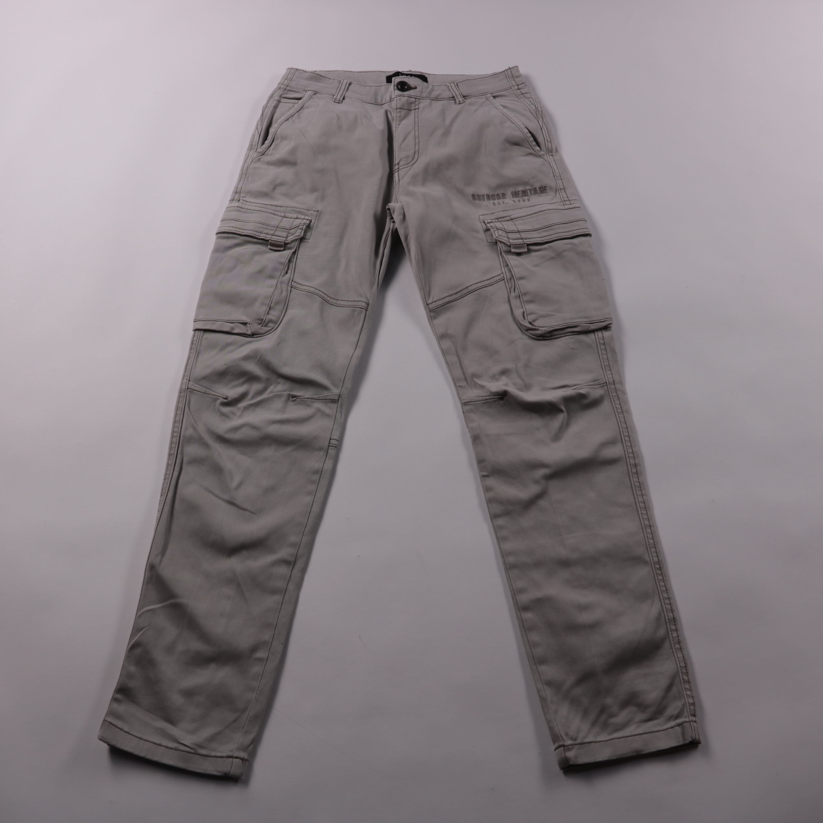 Мужские брюки-карго Smog в светло-сером цвете с накладными боковыми карманами. Подойдут для повседневной носки и активных прогулок, когда нужны вещи с хорошей посадкой и запасом по удобству. Плотный хлопок с добавлением эластана меньше сковывает движен...