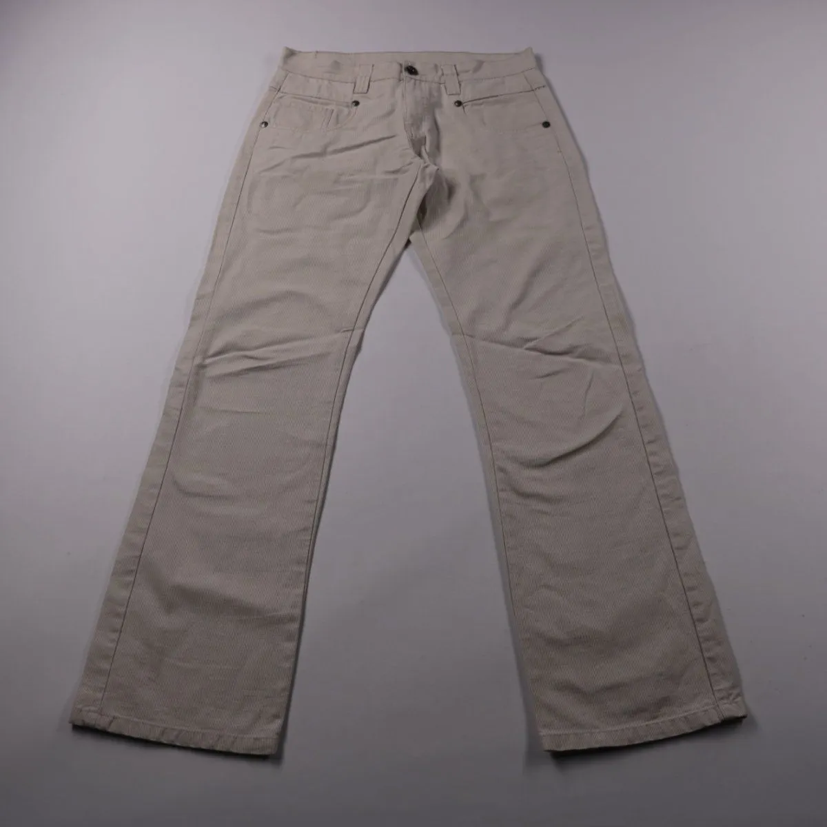 Мужские светло-бежевые брюки из 100% хлопка, прямого кроя с классической посадкой и пятью карманами. Подойдут для повседневной носки и офисных образов в тёплое время года. Натуральная ткань хорошо дышит и комфортна на каждый день.