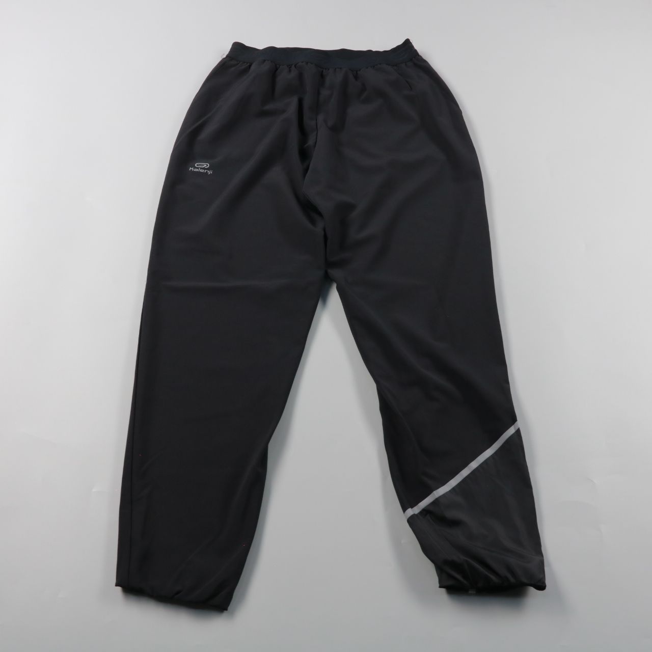 Спортивные брюки Kalenji чёрного цвета с эластичным поясом и светоотражающими элементами на штанине. Подойдут для бега и тренировок в зале или на улице. Лёгкий синтетический материал быстро сохнет и не стесняет движений.