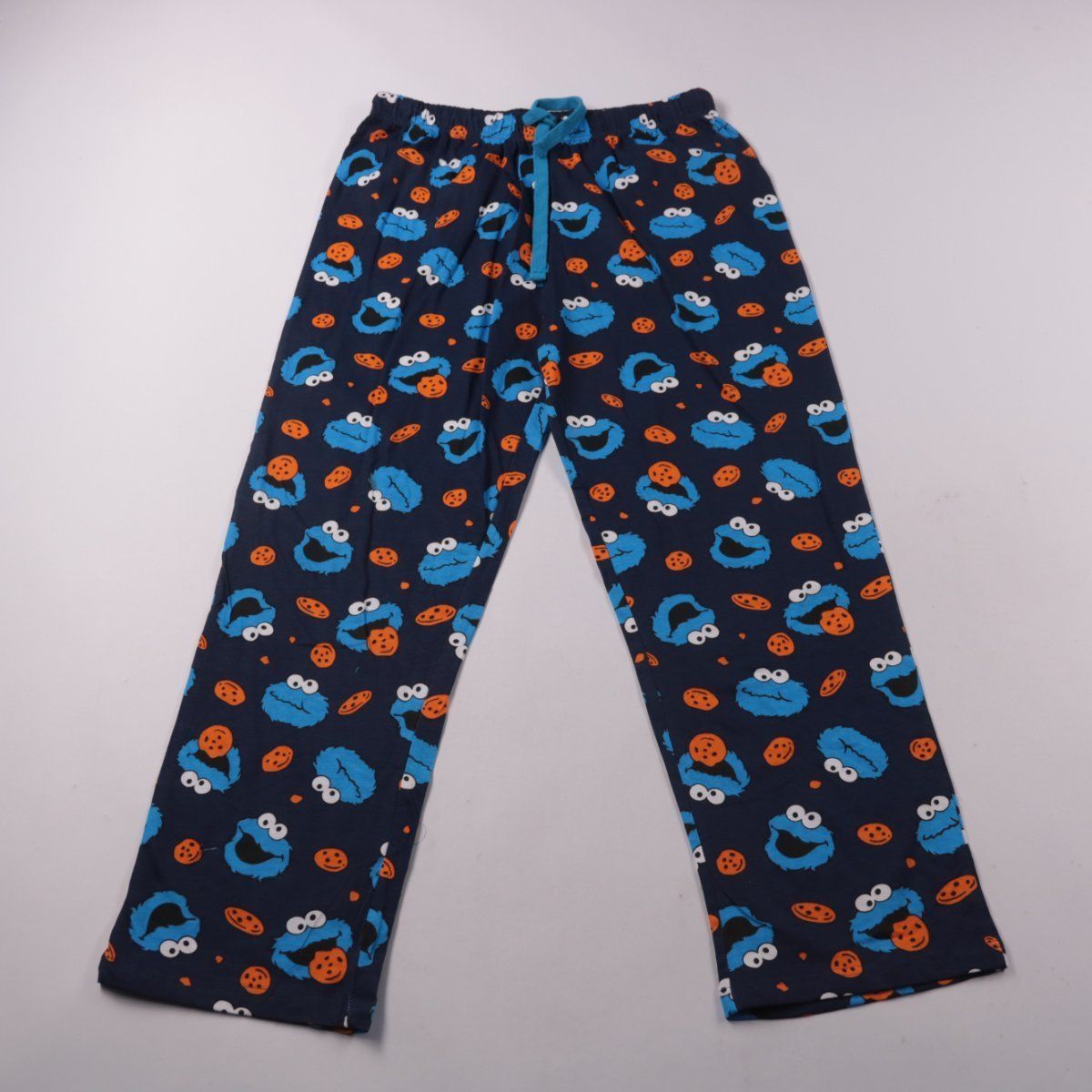Домашние брюки из хлопка с эластичным поясом и шнурком, тёмно-синие с ярким принтом. Подойдут для сна и отдыха дома. Мягкая ткань и пояс на резинке дают комфортную посадку.