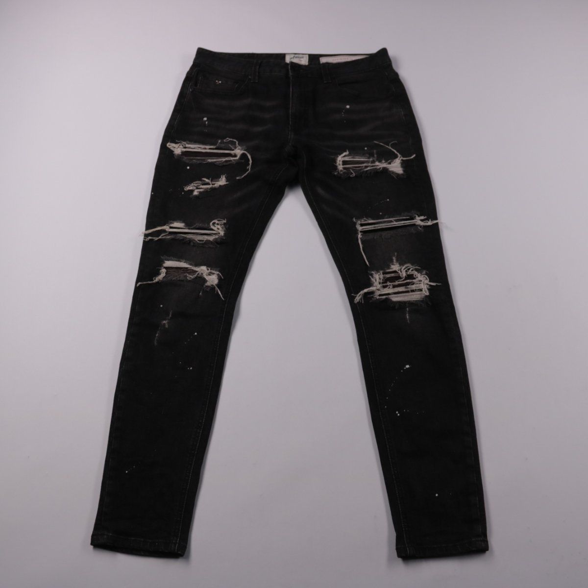 Мужские джинсы Amicci чёрного цвета с эффектом потертостей/разрывов и брызгами краски. Подойдут для повседневных образов в стиле streetwear и на выход. За счёт эластана в составе немного тянутся и комфортнее садятся по фигуре.