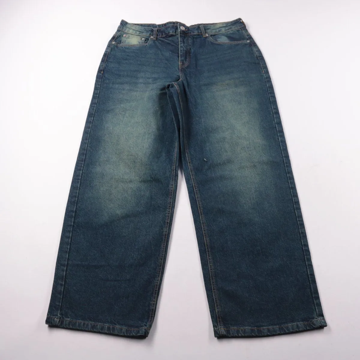 Мужские джинсы BoohooMAN синего цвета с лёгким эффектом варки и прямым свободным кроем. Подойдут для повседневных образов на любой сезон — с футболкой, худи или рубашкой. Плотный хлопковый деним практичен в носке и хорошо держит форму.