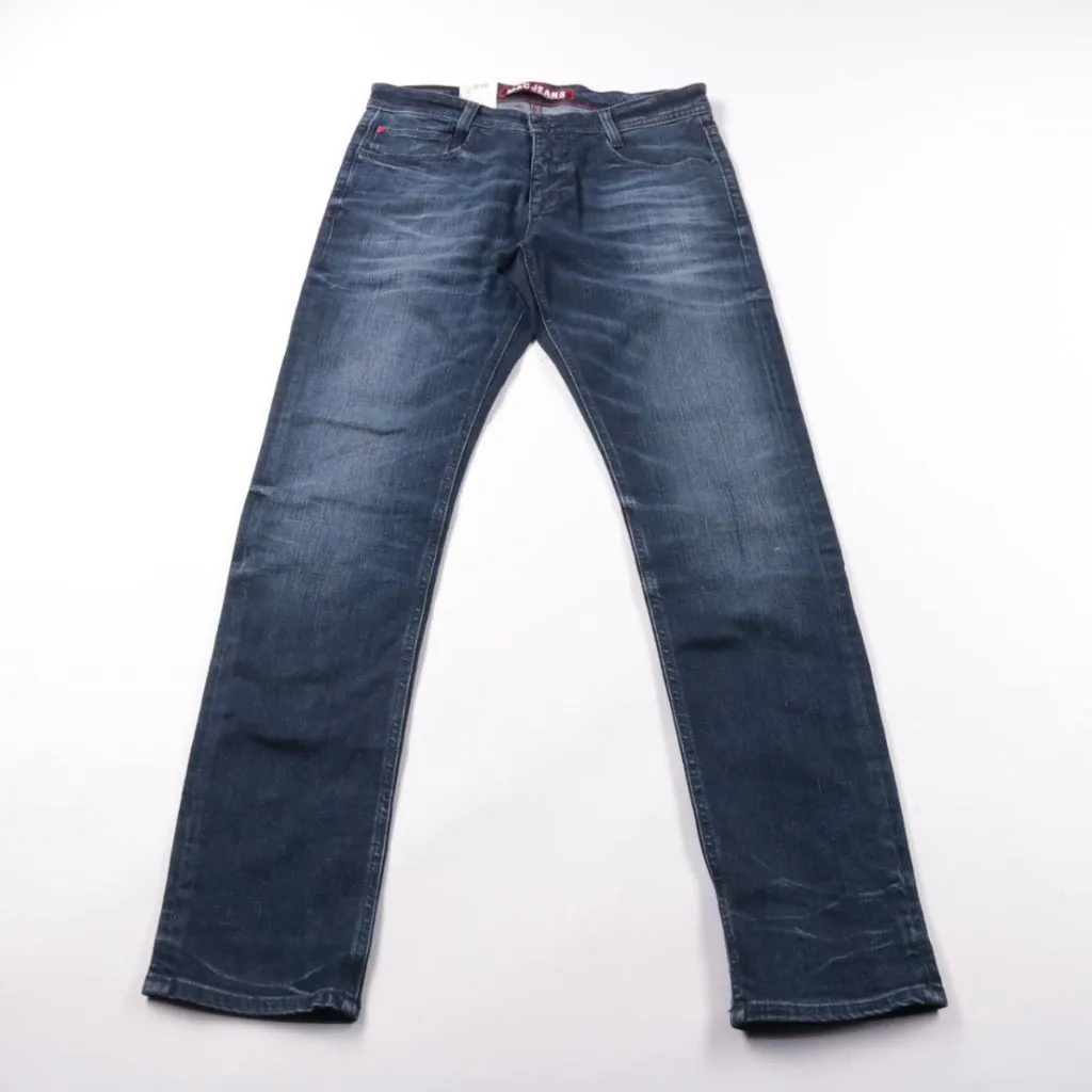 Мужские джинсы MAC JEANS, модель Stan, классический синий деним с лёгким эффектом выстиранности. Подойдут для повседневной носки в городе и на работу с нестрогим дресс-кодом. Практичны за счёт эластичной добавки в ткани — комфортнее в движении.