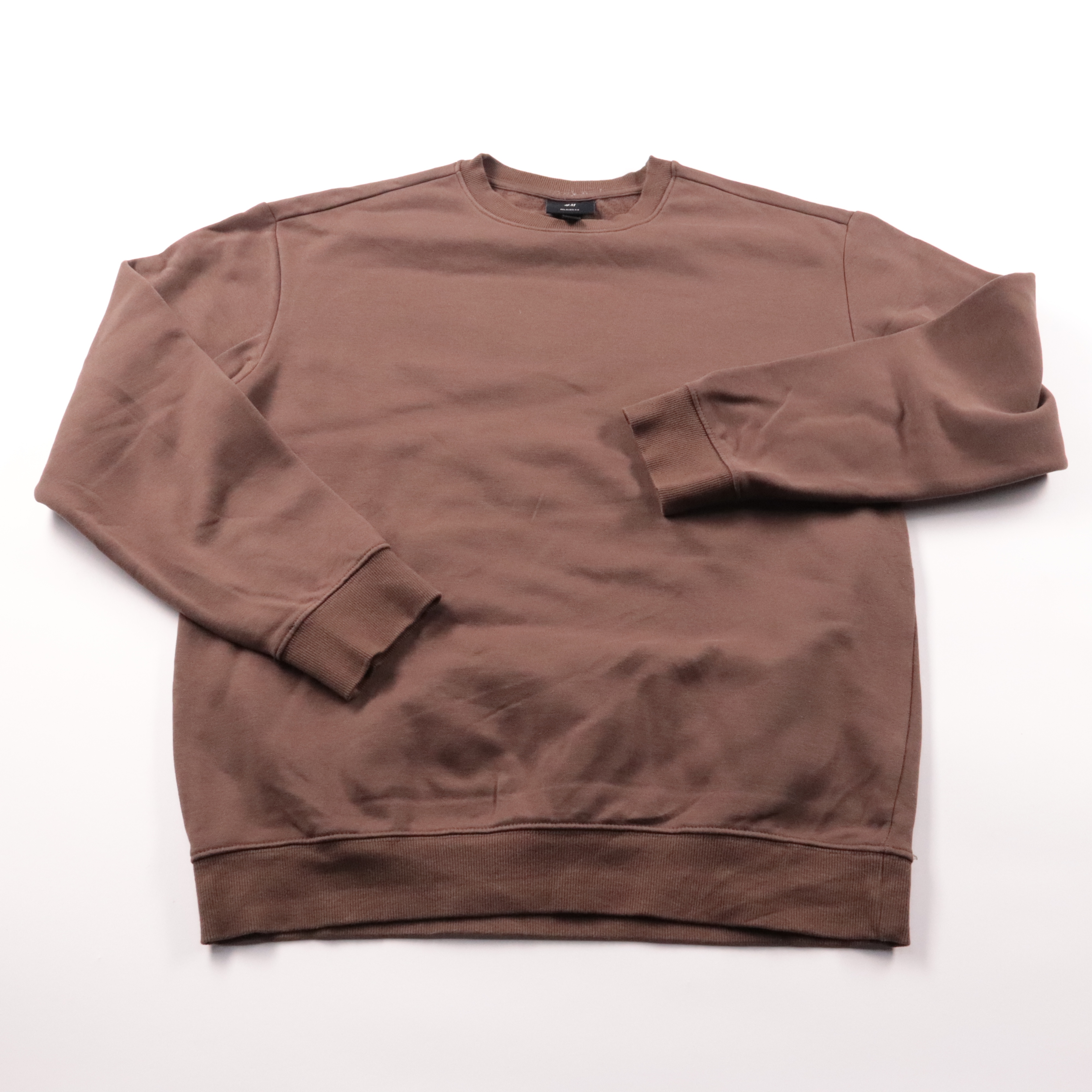 Мужской свитшот H&M Relaxed Fit в коричневом оттенке, без принта и с круглым вырезом. Подойдёт для повседневной носки и прогулок в демисезон, легко сочетается с джинсами и спортивными брюками. Мягкая ткань с начёсом внутри даёт комфорт и сохраняет тепло.
