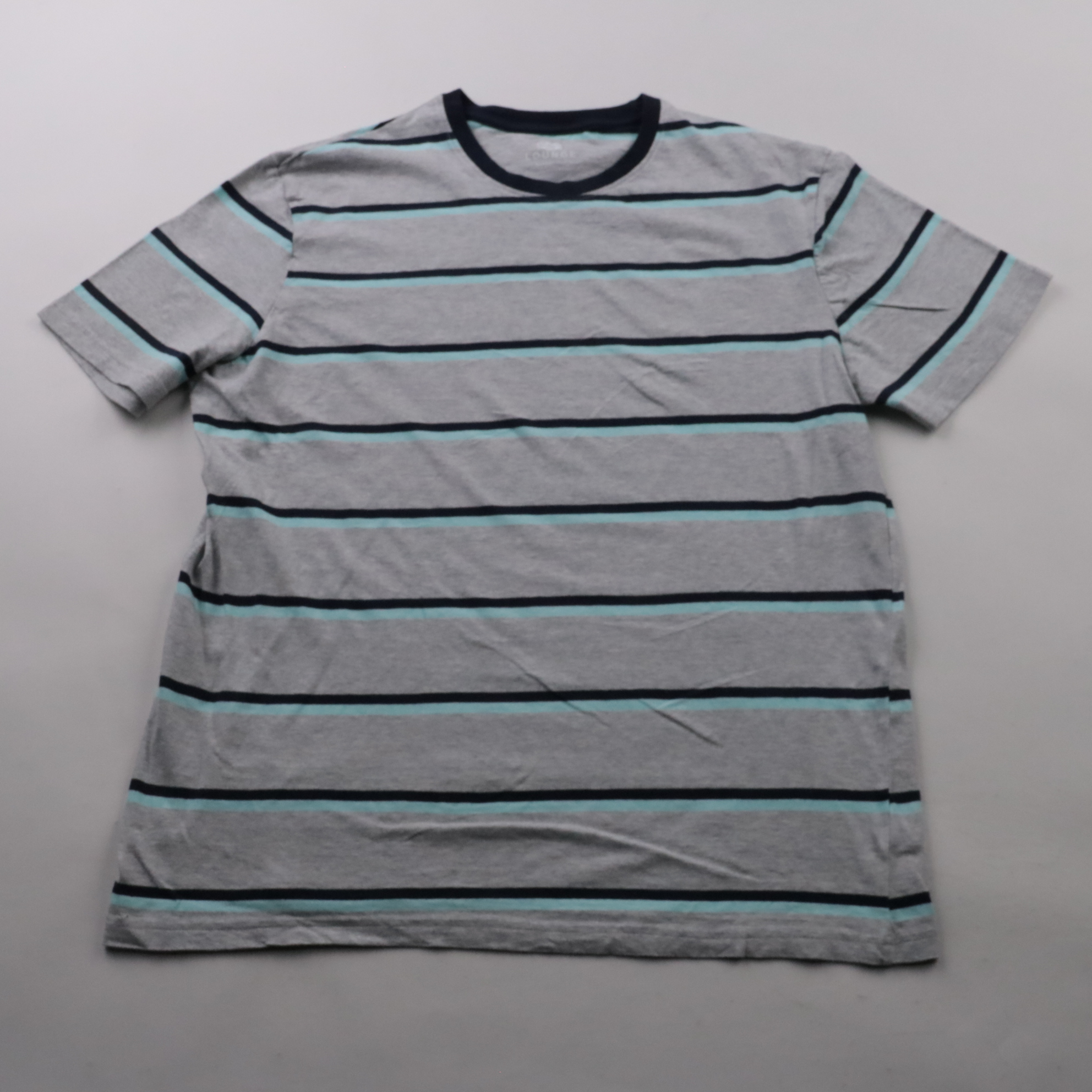 Мужская футболка F&F Lounge Essentials в сером цвете с горизонтальными полосками. Подойдёт для повседневной носки, дома и летних прогулок. Лёгкая и дышащая, удобно сочетается с джинсами и шортами.