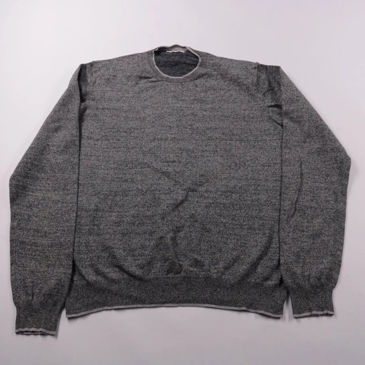 Мужской джемпер Clayton Knitwear серого меланжа с круглым вырезом и манжетами на резинке. Подойдёт для повседневной носки в офисе или на прогулках в прохладную погоду. Практичен тем, что мягкий хлопковый трикотаж хорошо дышит и легко сочетается с базовым гардеробом.