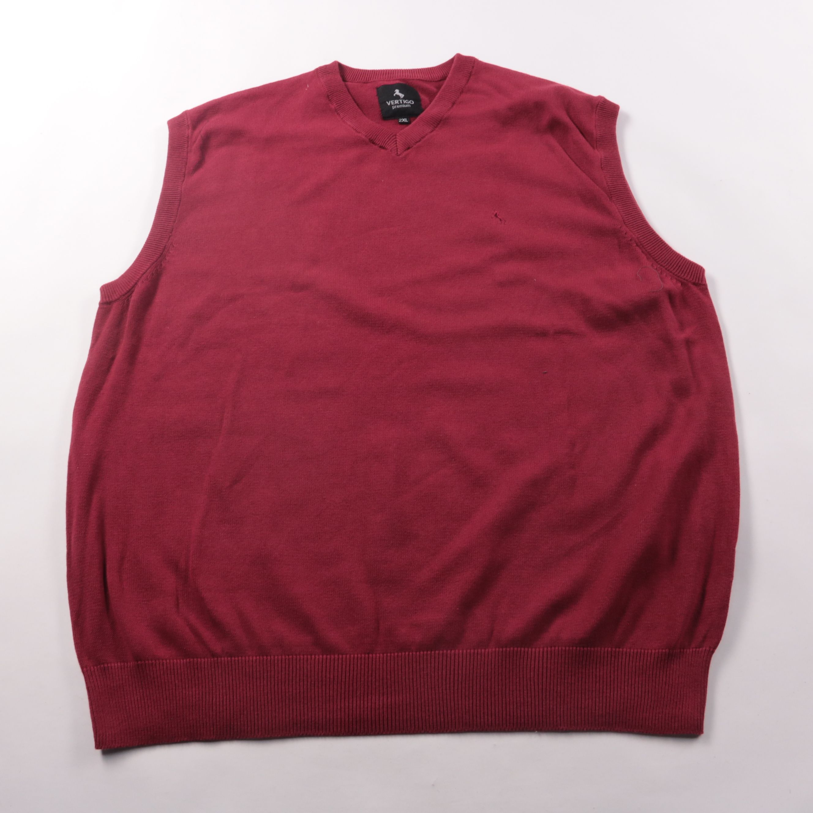 Мужской трикотажный жилет Vertigo Premium бордового цвета с V-образным вырезом. Подойдёт для офиса и повседневных образов в прохладную погоду, удобно носить поверх рубашки или лонгслива. Хлопковая основа приятна к телу и хорошо дышит.