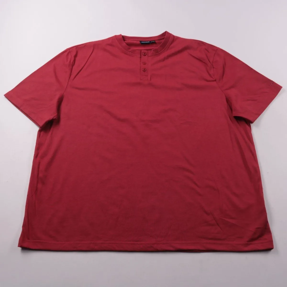 Мужская футболка SOUTHBAY бордового цвета с коротким рукавом и планкой на пуговицах (henley). Подойдёт для повседневной носки летом и в тёплое межсезонье. Практична в уходе: можно стирать в машине.