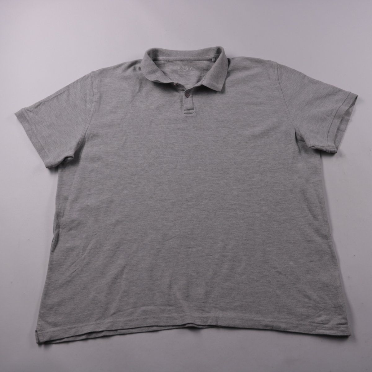 Мужское поло EASY серого меланжевого цвета с коротким рукавом и застёжкой на пуговицах. Подойдёт для повседневной носки и casual-офиса. Смесь хлопка с вискозой приятна к телу и хорошо дышит.