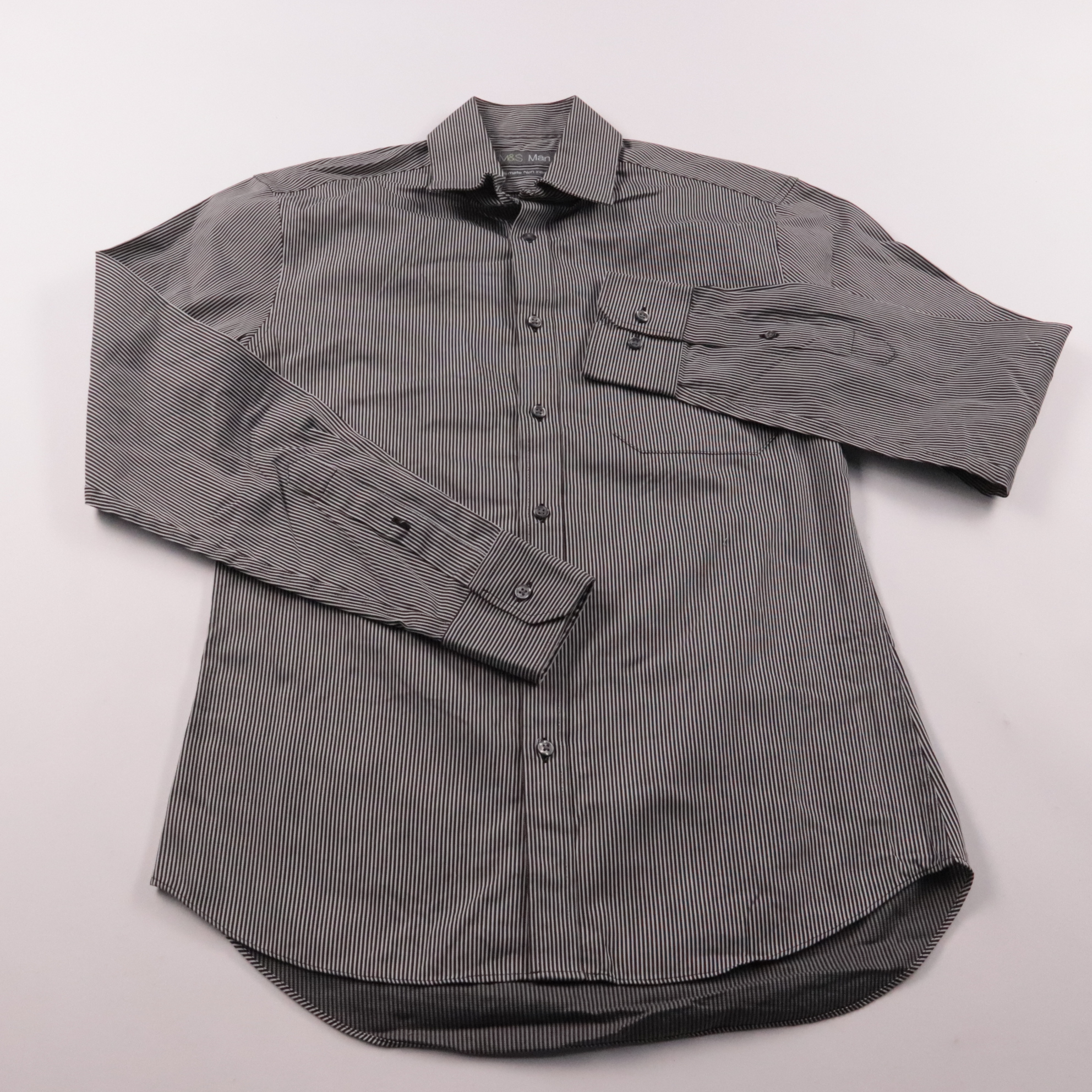 Мужская рубашка M&S Man в тонкую полоску, модель Ultimate Non Iron с длинным рукавом и нагрудным карманом. Подойдёт для офиса и повседневных образов под пиджак или джемпер. Практичное преимущество — ткань 100% хлопок и легко разглаживается после стирки.