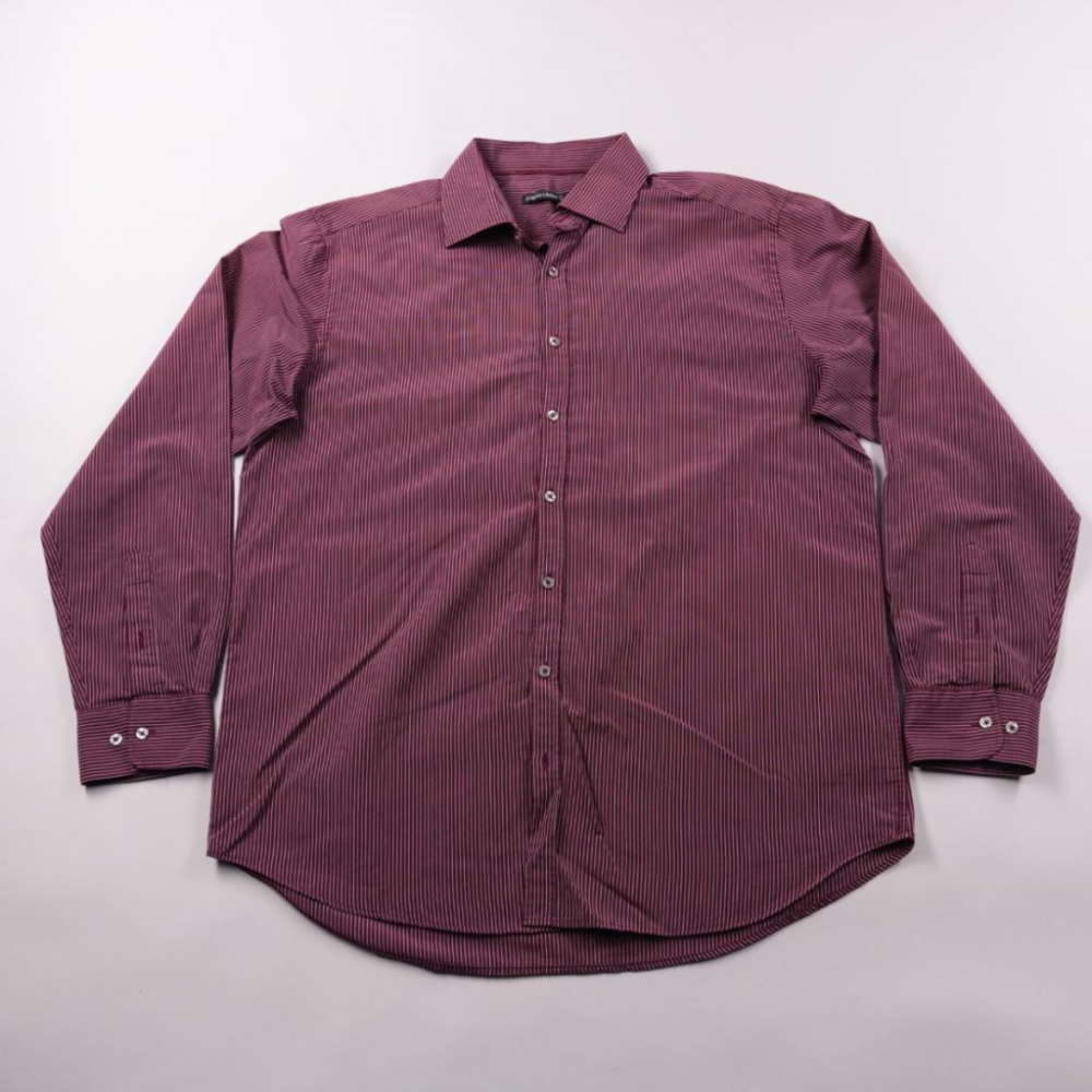 Мужская рубашка Angelo Litrico в бордовом цвете с тонкой полоской и длинным рукавом. Подойдёт для офиса и повседневных образов, хорошо смотрится как с брюками, так и с джинсами. Смесовая ткань (50% хлопок, 50% полиэстер) меньше мнётся и проще в уходе.