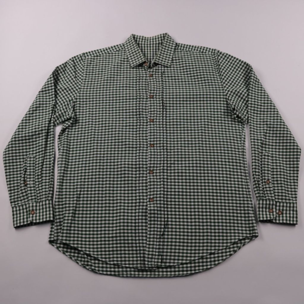 Мужская рубашка в мелкую зелёно-белую клетку, классический воротник и застёжка на пуговицы. Подойдёт для повседневной носки и офисного casual, можно носить как самостоятельно, так и поверх футболки. Натуральный хлопок хорошо дышит и комфортен в течение...
