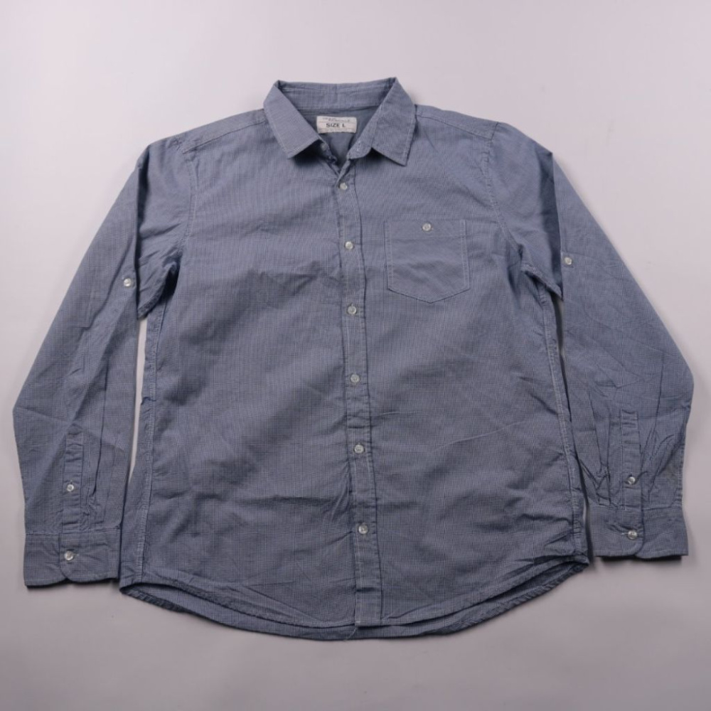 Мужская рубашка Jean Pascale из хлопка, синего цвета с мелким узором и нагрудным карманом. Подойдёт для офиса и повседневных образов, хорошо сочетается с джинсами и брюками. Натуральная ткань дышит и комфортна в носке.
