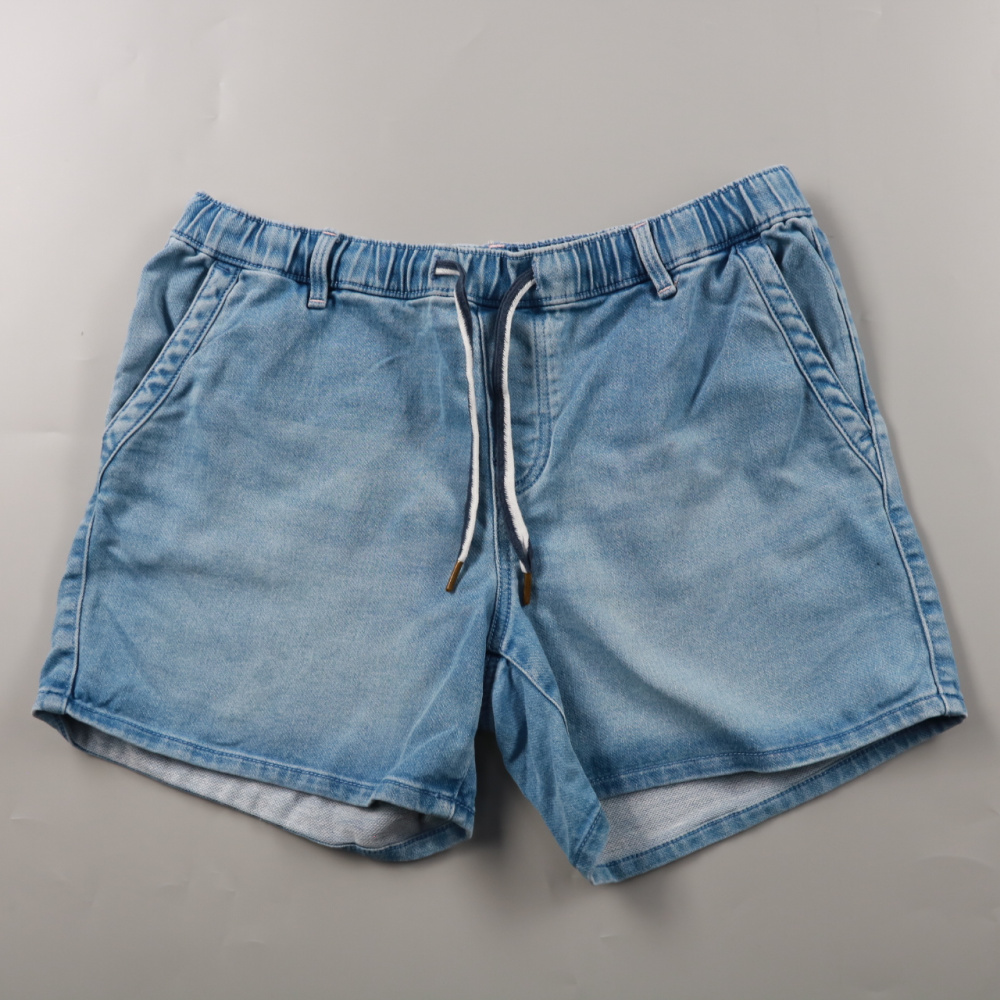 Мужские джинсовые шорты с эластичным поясом на шнурке, удобные для повседневной носки и отдыха в тёплую погоду. Лёгкая посадка и карманы делают модель практичной для прогулок и поездок.
