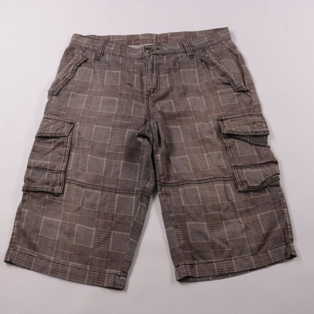 Мужские шорты-карго Clockhouse в серо-коричневую клетку, с боковыми накладными карманами. Подойдут для лета и тёплой погоды в городе или на отдыхе благодаря свободному крою. Практичный плюс — много карманов для мелочей.