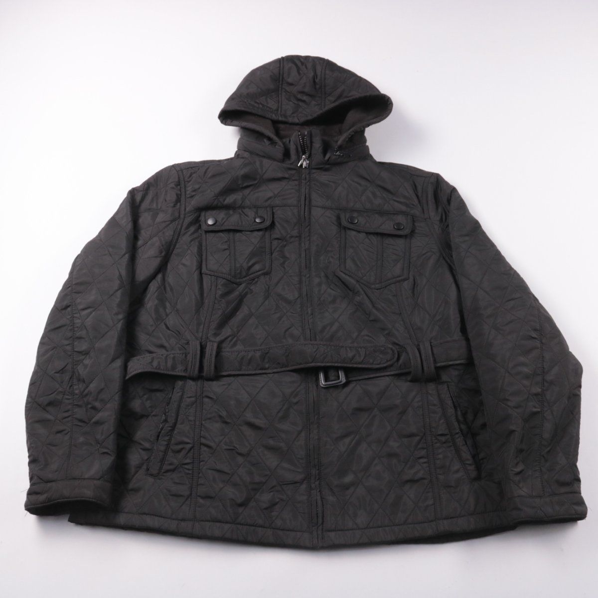 Стёганая куртка TU чёрного цвета с капюшоном и поясом, застёгивается на молнию. Подойдёт для прогулок и повседневной носки в прохладную погоду, есть нагрудные карманы на кнопках. Практичный плюс — лёгкая, не продувается и быстро сохнет.